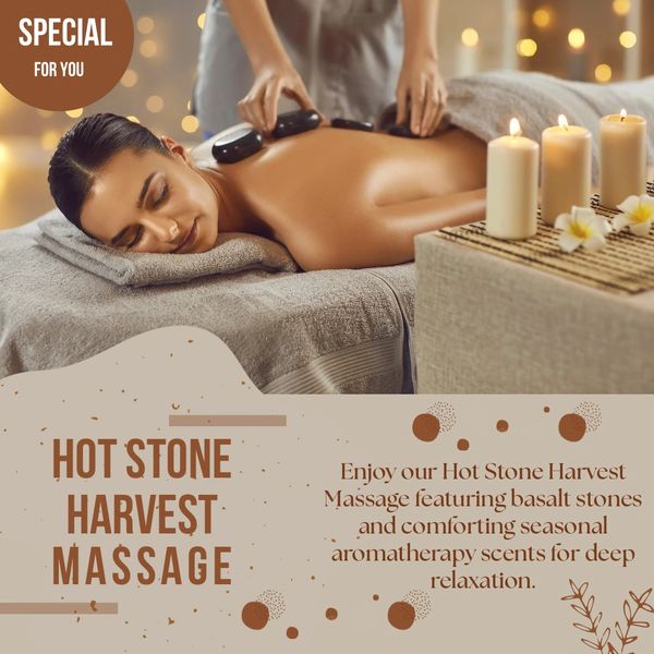 Melt into fall with the warmth of our Hot Stone Harvest Massage for only $125 plus tax!🕯️🍁