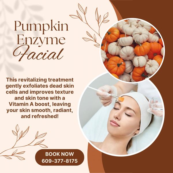 Glow naturally with our rejuvenating Pumpkin Enzyme Facial for only $125! The perfect blend of exfoliation and autumn feels.🎃✨